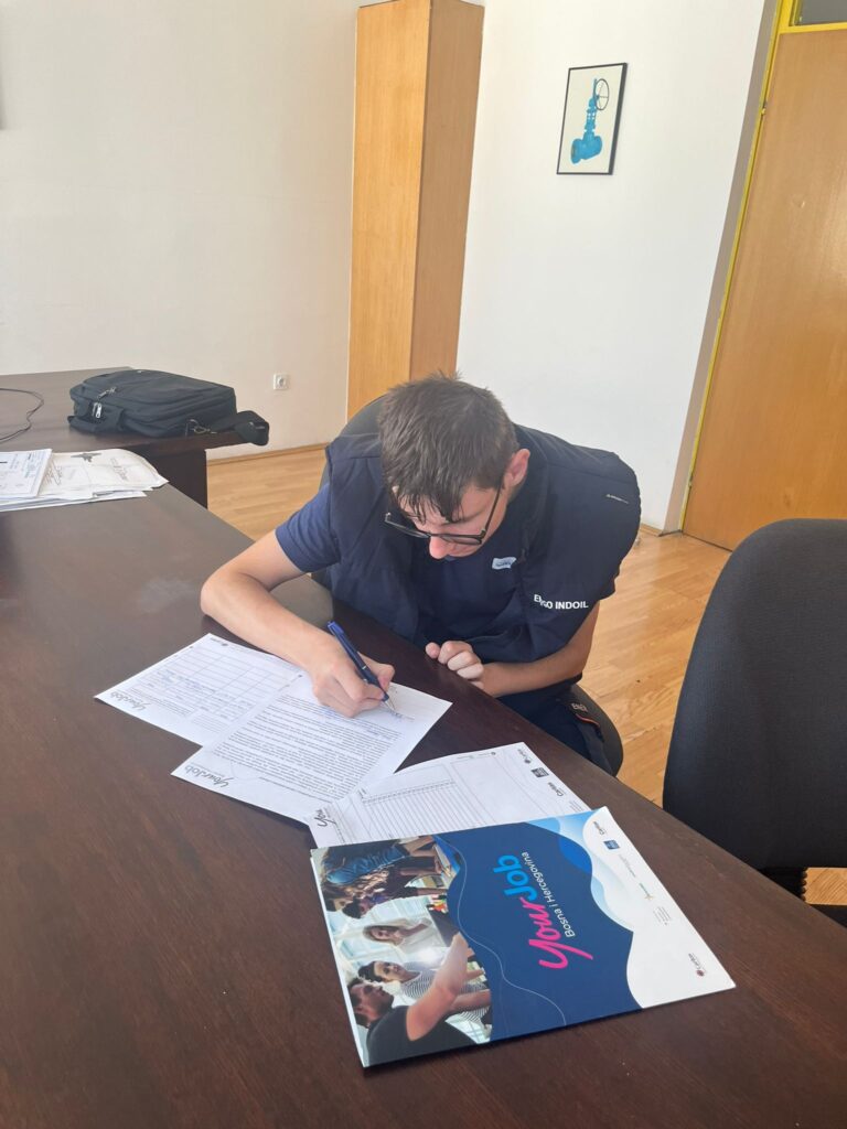 Ermin se u projekt uključio na preporuku Službe za zapošljavanje, a već pri prvom susretu s timom Your Job projekta uspostavljena je kvalitetna suradnja temeljena na razumijevanju i međusobnom povjerenju. Kroz strukturiranu podršku, edukacije i praktičnu obuku, stekao je konkretna znanja i vještine koje su ga osnažile da se uspješno zaposli u svojoj struci.