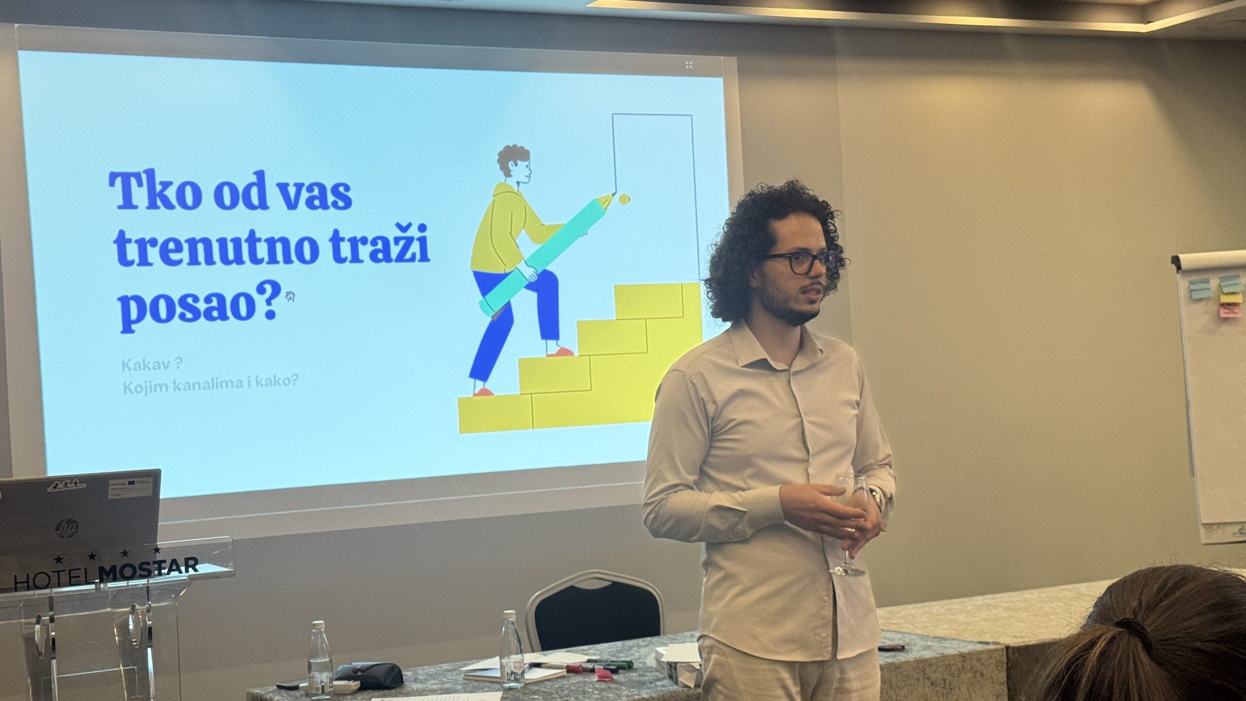 Na nedavnoj obuci o aktivnom traženju posla, koja je održana u okviru programa YourJob kojeg podržavaju Europska unija i Švedska kroz projekt EUzaZapošljavanje, Ivo je polaznike učio kako prepoznati vlastite vještine i predstaviti ih kroz životopis, motivacijsko pismo i intervju.